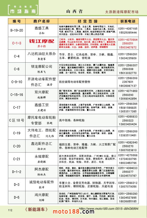 內(nèi)112 太原市新港輝摩配市場(chǎng)商戶