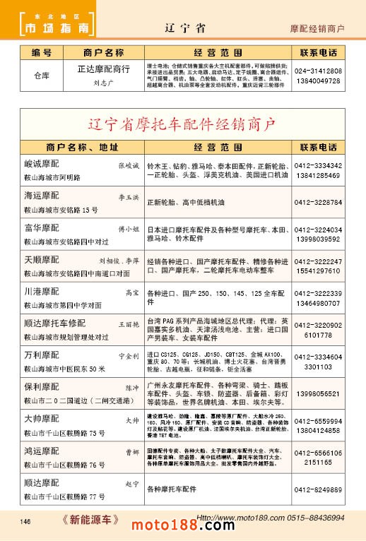 內(nèi)146 遼寧省摩托車配件經(jīng)銷商戶