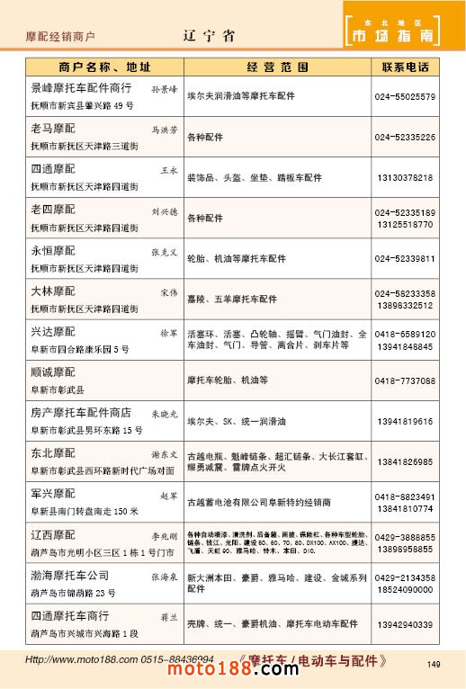中國(guó)摩配市場(chǎng)從上世紀(jì)九十年代開(kāi)始經(jīng)過(guò)高速度的發(fā)展,正逐步減速,摩托車行業(yè)也漸呈式微,與之緊密相關(guān)的后市場(chǎng)的配件與維修也呈逐步下滑之勢(shì),取代摩托車的在發(fā)達(dá)地區(qū)是汽車,欠發(fā)達(dá)地區(qū)是電動(dòng)兩輪、電動(dòng)三輪,甚至電動(dòng)四輪車,隨著經(jīng)濟(jì)的發(fā)展,出行的多樣化,也給了消費(fèi)者多重的選擇。目前現(xiàn)有的摩托車及配件市場(chǎng),也不再是以純摩托車為主體,有的市場(chǎng)電動(dòng)車取代了摩托車,有的商店也是混合經(jīng)營(yíng),這些變化在《市場(chǎng)指南》里面都有所反應(yīng)。這次《北方指南》一些小市場(chǎng)不再單列,并入到相應(yīng)的省份中去;以前去市場(chǎng)的公交線路,書(shū)中也不再列入,因?yàn)楝F(xiàn)在的地圖導(dǎo)航功能十分強(qiáng)大,既新又準(zhǔn)。