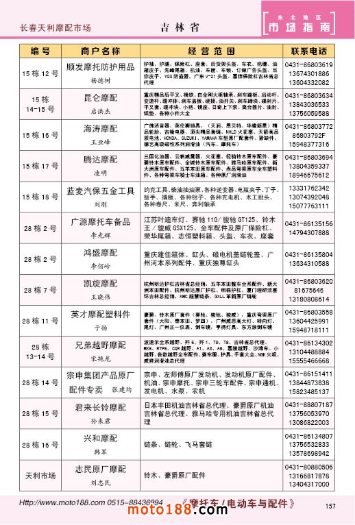 中國(guó)摩配市場(chǎng)從上世紀(jì)九十年代開(kāi)始經(jīng)過(guò)高速度的發(fā)展,正逐步減速,摩托車(chē)行業(yè)也漸呈式微,與之緊密相關(guān)的后市場(chǎng)的配件與維修也呈逐步下滑之勢(shì),取代摩托車(chē)的在發(fā)達(dá)地區(qū)是汽車(chē),欠發(fā)達(dá)地區(qū)是電動(dòng)兩輪、電動(dòng)三輪,甚至電動(dòng)四輪車(chē),隨著經(jīng)濟(jì)的發(fā)展,出行的多樣化,也給了消費(fèi)者多重的選擇。目前現(xiàn)有的摩托車(chē)及配件市場(chǎng),也不再是以純摩托車(chē)為主體,有的市場(chǎng)電動(dòng)車(chē)取代了摩托車(chē),有的商店也是混合經(jīng)營(yíng),這些變化在《市場(chǎng)指南》里面都有所反應(yīng)。這次《北方指南》一些小市場(chǎng)不再單列,并入到相應(yīng)的省份中去;以前去市場(chǎng)的公交線(xiàn)路,書(shū)中也不再列入,因?yàn)楝F(xiàn)在的地圖導(dǎo)航功能十分強(qiáng)大,既新又準(zhǔn)。