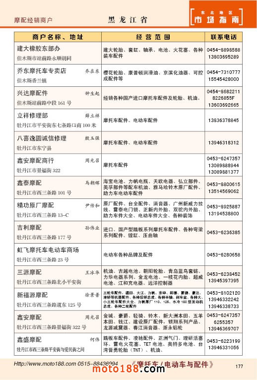 內(nèi)177 黑龍江省摩配經(jīng)銷商戶