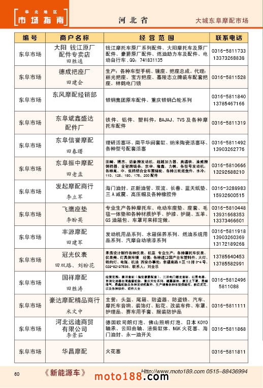 中國摩配市場從上世紀(jì)九十年代開始經(jīng)過高速度的發(fā)展,正逐步減速,摩托車行業(yè)也漸呈式微,與之緊密相關(guān)的后市場的配件與維修也呈逐步下滑之勢,取代摩托車的在發(fā)達(dá)地區(qū)是汽車,欠發(fā)達(dá)地區(qū)是電動兩輪、電動三輪,甚至電動四輪車,隨著經(jīng)濟(jì)的發(fā)展,出行的多樣化,也給了消費(fèi)者多重的選擇。目前現(xiàn)有的摩托車及配件市場,也不再是以純摩托車為主體,有的市場電動車取代了摩托車,有的商店也是混合經(jīng)營,這些變化在《市場指南》里面都有所反應(yīng)。這次《北方指南》一些小市場不再單列,并入到相應(yīng)的省份中去;以前去市場的公交線路,書中也不再列入,因為現(xiàn)在的地圖導(dǎo)航功能十分強(qiáng)大,既新又準(zhǔn)。