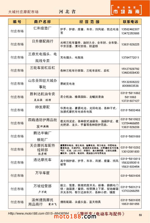中國摩配市場從上世紀九十年代開始經(jīng)過高速度的發(fā)展,正逐步減速,摩托車行業(yè)也漸呈式微,與之緊密相關(guān)的后市場的配件與維修也呈逐步下滑之勢,取代摩托車的在發(fā)達地區(qū)是汽車,欠發(fā)達地區(qū)是電動兩輪、電動三輪,甚至電動四輪車,隨著經(jīng)濟的發(fā)展,出行的多樣化,也給了消費者多重的選擇。目前現(xiàn)有的摩托車及配件市場,也不再是以純摩托車為主體,有的市場電動車取代了摩托車,有的商店也是混合經(jīng)營,這些變化在《市場指南》里面都有所反應(yīng)。這次《北方指南》一些小市場不再單列,并入到相應(yīng)的省份中去;以前去市場的公交線路,書中也不再列入,因為現(xiàn)在的地圖導(dǎo)航功能十分強大,既新又準。