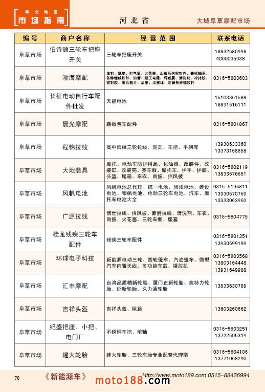 中國摩配市場從上世紀九十年代開始經(jīng)過高速度的發(fā)展,正逐步減速,摩托車行業(yè)也漸呈式微,與之緊密相關(guān)的后市場的配件與維修也呈逐步下滑之勢,取代摩托車的在發(fā)達地區(qū)是汽車,欠發(fā)達地區(qū)是電動兩輪、電動三輪,甚至電動四輪車,隨著經(jīng)濟的發(fā)展,出行的多樣化,也給了消費者多重的選擇。目前現(xiàn)有的摩托車及配件市場,也不再是以純摩托車為主體,有的市場電動車取代了摩托車,有的商店也是混合經(jīng)營,這些變化在《市場指南》里面都有所反應。這次《北方指南》一些小市場不再單列,并入到相應的省份中去;以前去市場的公交線路,書中也不再列入,因為現(xiàn)在的地圖導航功能十分強大,既新又準。