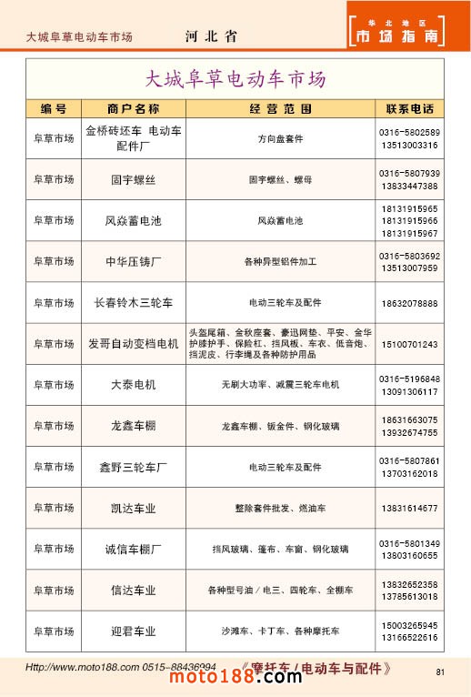 中國(guó)摩配市場(chǎng)從上世紀(jì)九十年代開(kāi)始經(jīng)過(guò)高速度的發(fā)展,正逐步減速,摩托車(chē)行業(yè)也漸呈式微,與之緊密相關(guān)的后市場(chǎng)的配件與維修也呈逐步下滑之勢(shì),取代摩托車(chē)的在發(fā)達(dá)地區(qū)是汽車(chē),欠發(fā)達(dá)地區(qū)是電動(dòng)兩輪、電動(dòng)三輪,甚至電動(dòng)四輪車(chē),隨著經(jīng)濟(jì)的發(fā)展,出行的多樣化,也給了消費(fèi)者多重的選擇。目前現(xiàn)有的摩托車(chē)及配件市場(chǎng),也不再是以純摩托車(chē)為主體,有的市場(chǎng)電動(dòng)車(chē)取代了摩托車(chē),有的商店也是混合經(jīng)營(yíng),這些變化在《市場(chǎng)指南》里面都有所反應(yīng)。這次《北方指南》一些小市場(chǎng)不再單列,并入到相應(yīng)的省份中去;以前去市場(chǎng)的公交線路,書(shū)中也不再列入,因?yàn)楝F(xiàn)在的地圖導(dǎo)航功能十分強(qiáng)大,既新又準(zhǔn)。