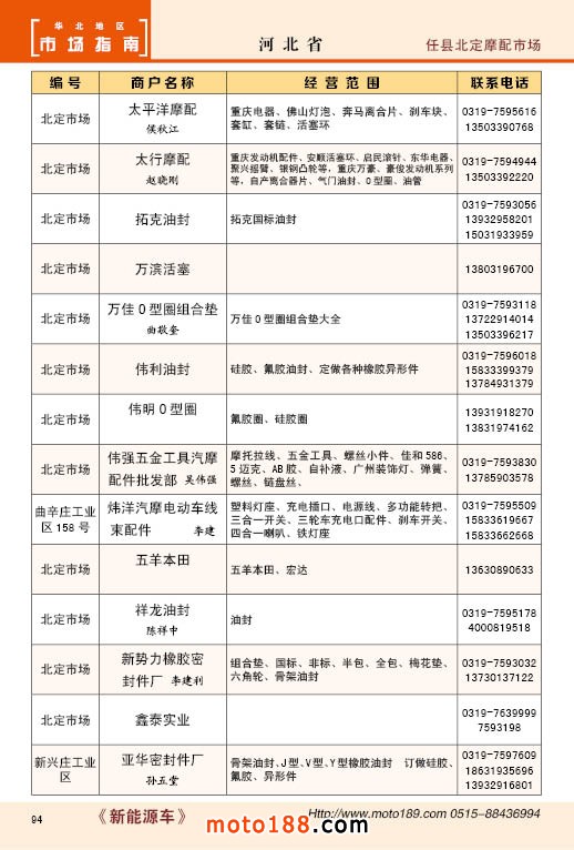 中國(guó)摩配市場(chǎng)從上世紀(jì)九十年代開(kāi)始經(jīng)過(guò)高速度的發(fā)展,正逐步減速,摩托車(chē)行業(yè)也漸呈式微,與之緊密相關(guān)的后市場(chǎng)的配件與維修也呈逐步下滑之勢(shì),取代摩托車(chē)的在發(fā)達(dá)地區(qū)是汽車(chē),欠發(fā)達(dá)地區(qū)是電動(dòng)兩輪、電動(dòng)三輪,甚至電動(dòng)四輪車(chē),隨著經(jīng)濟(jì)的發(fā)展,出行的多樣化,也給了消費(fèi)者多重的選擇。目前現(xiàn)有的摩托車(chē)及配件市場(chǎng),也不再是以純摩托車(chē)為主體,有的市場(chǎng)電動(dòng)車(chē)取代了摩托車(chē),有的商店也是混合經(jīng)營(yíng),這些變化在《市場(chǎng)指南》里面都有所反應(yīng)。這次《北方指南》一些小市場(chǎng)不再單列,并入到相應(yīng)的省份中去;以前去市場(chǎng)的公交線(xiàn)路,書(shū)中也不再列入,因?yàn)楝F(xiàn)在的地圖導(dǎo)航功能十分強(qiáng)大,既新又準(zhǔn)。