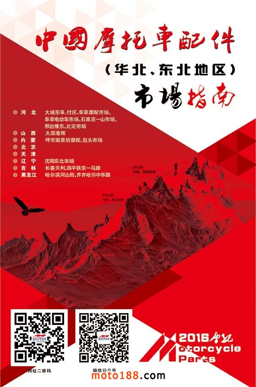 中國摩配市場從上世紀九十年代開始經過高速度的發(fā)展,正逐步減速,摩托車行業(yè)也漸呈式微,與之緊密相關的后市場的配件與維修也呈逐步下滑之勢,取代摩托車的在發(fā)達地區(qū)是汽車,欠發(fā)達地區(qū)是電動兩輪、電動三輪,甚至電動四輪車,隨著經濟的發(fā)展,出行的多樣化,也給了消費者多重的選擇。目前現(xiàn)有的摩托車及配件市場,也不再是以純摩托車為主體,有的市場電動車取代了摩托車,有的商店也是混合經營,這些變化在《市場指南》里面都有所反應。這次《北方指南》一些小市場不再單列,并入到相應的省份中去;以前去市場的公交線路,書中也不再列入,因為現(xiàn)在的地圖導航功能十分強大,既新又準。