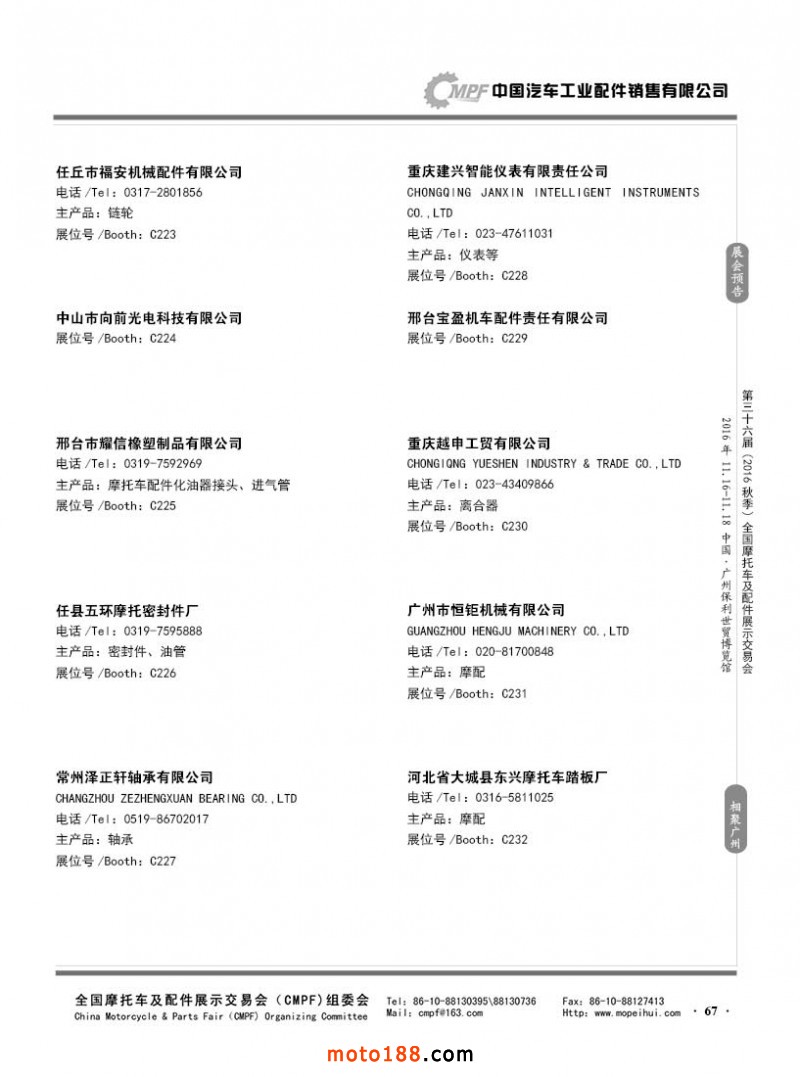 各摩配市場(chǎng)詳細(xì)資料請(qǐng)注冊(cè)我們的VIP會(huì)員咨詢 電話:0515-88436994 QQ:309362965、842467029、1051652573