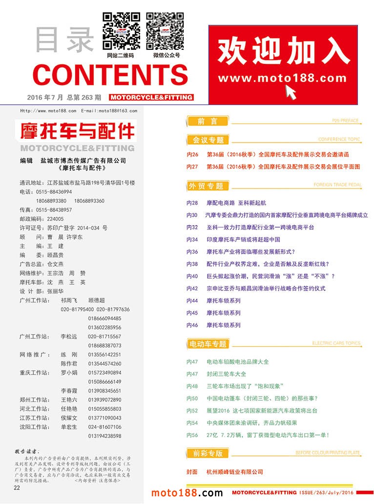 從下半年開始,開設(shè)外貿(mào)專題。今年內(nèi)銷市場疲軟,然而廣州幾大市場在外貿(mào)出口業(yè)務(wù)上,除了價格下滑之外,出口量并沒有明顯的下降,廣州羅沖圍一帶市場以白云市場為龍頭,一批年輕經(jīng)銷商們朝氣蓬勃的活躍在外貿(mào)市場上,他們更注重品牌化,拒絕假冒;他們立足于傳統(tǒng)行業(yè),又運用互聯(lián)網(wǎng)技術(shù),將摩托車配件貿(mào)易逐步向電子商務(wù)化進軍;為了拓展國外市場,他們摒棄門戶之見,抱團出海,除了組織地方商會,又將地方商會聯(lián)合起來,組成對外貿(mào)易的航母;他們使出各種解數(shù),一時間風(fēng)生水起,給行業(yè)帶來了勃勃生機,他們立足于當(dāng)下,卻志在未來,正逐步引領(lǐng)行業(yè)向新的目標(biāo)前進,為此我們做了一個專題的報道《長風(fēng)破浪會有時,直掛云帆濟滄?!罚捎谶@期雜志時間緊迫,以及版面的限制,請見下一期雜志。本期雜志用了四頁紙報道了這樣一個新成立的團隊,他們?yōu)樾袠I(yè)帶來變革,帶入新的氣象。正是因為我們有一代具有國際化視野的摩配商人,也是我們行業(yè)希望所在,未來所在。