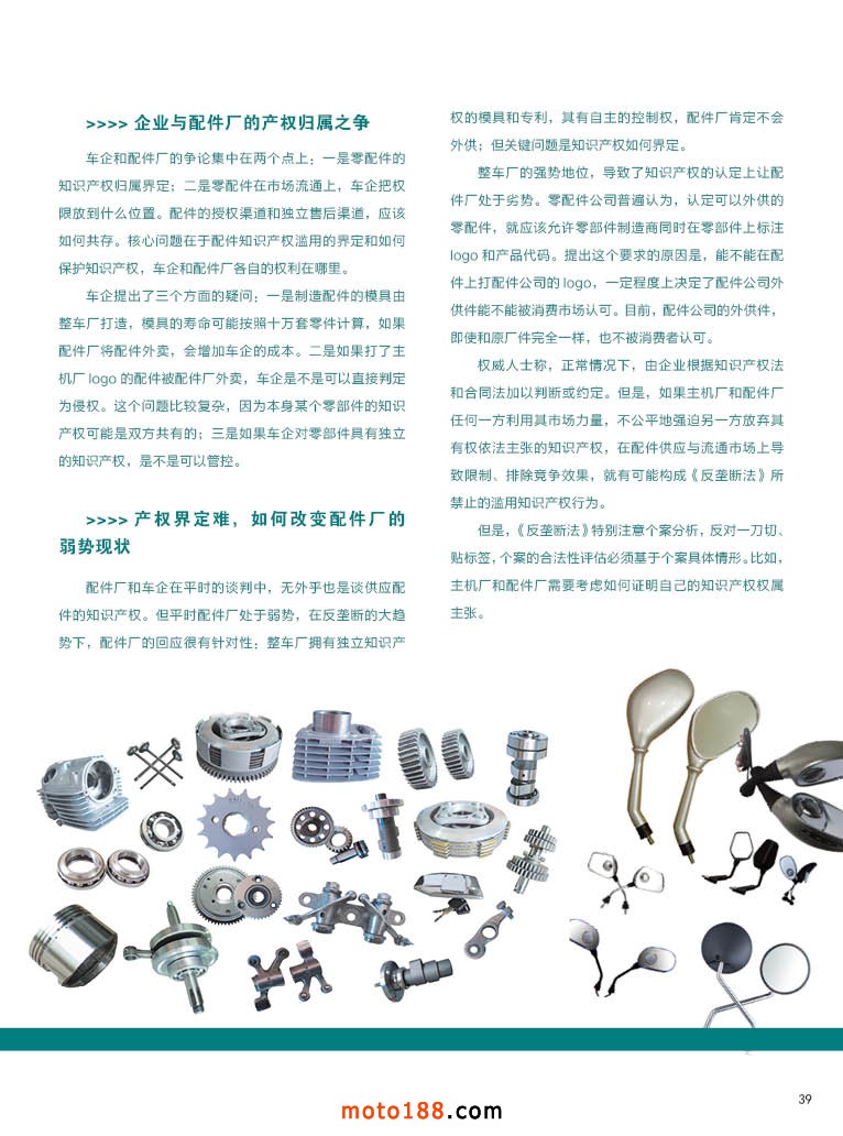 從下半年開始,開設外貿(mào)專題。今年內(nèi)銷市場疲軟,然而廣州幾大市場在外貿(mào)出口業(yè)務上,除了價格下滑之外,出口量并沒有明顯的下降,廣州羅沖圍一帶市場以白云市場為龍頭,一批年輕經(jīng)銷商們朝氣蓬勃的活躍在外貿(mào)市場上,他們更注重品牌化,拒絕假冒;他們立足于傳統(tǒng)行業(yè),又運用互聯(lián)網(wǎng)技術,將摩托車配件貿(mào)易逐步向電子商務化進軍;為了拓展國外市場,他們摒棄門戶之見,抱團出海,除了組織地方商會,又將地方商會聯(lián)合起來,組成對外貿(mào)易的航母;他們使出各種解數(shù),一時間風生水起,給行業(yè)帶來了勃勃生機,他們立足于當下,卻志在未來,正逐步引領行業(yè)向新的目標前進,為此我們做了一個專題的報道《長風破浪會有時,直掛云帆濟滄?!?,由于這期雜志時間緊迫,以及版面的限制,請見下一期雜志。本期雜志用了四頁紙報道了這樣一個新成立的團隊,他們?yōu)樾袠I(yè)帶來變革,帶入新的氣象。正是因為我們有一代具有國際化視野的摩配商人,也是我們行業(yè)希望所在,未來所在。