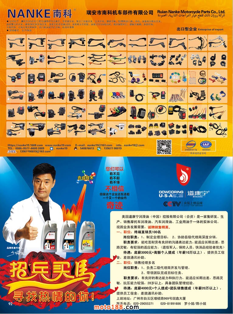從下半年開(kāi)始,開(kāi)設(shè)外貿(mào)專(zhuān)題。今年內(nèi)銷(xiāo)市場(chǎng)疲軟,然而廣州幾大市場(chǎng)在外貿(mào)出口業(yè)務(wù)上,除了價(jià)格下滑之外,出口量并沒(méi)有明顯的下降,廣州羅沖圍一帶市場(chǎng)以白云市場(chǎng)為龍頭,一批年輕經(jīng)銷(xiāo)商們朝氣蓬勃的活躍在外貿(mào)市場(chǎng)上,他們更注重品牌化,拒絕假冒;他們立足于傳統(tǒng)行業(yè),又運(yùn)用互聯(lián)網(wǎng)技術(shù),將摩托車(chē)配件貿(mào)易逐步向電子商務(wù)化進(jìn)軍;為了拓展國(guó)外市場(chǎng),他們摒棄門(mén)戶(hù)之見(jiàn),抱團(tuán)出海,除了組織地方商會(huì),又將地方商會(huì)聯(lián)合起來(lái),組成對(duì)外貿(mào)易的航母;他們使出各種解數(shù),一時(shí)間風(fēng)生水起,給行業(yè)帶來(lái)了勃勃生機(jī),他們立足于當(dāng)下,卻志在未來(lái),正逐步引領(lǐng)行業(yè)向新的目標(biāo)前進(jìn),為此我們做了一個(gè)專(zhuān)題的報(bào)道《長(zhǎng)風(fēng)破浪會(huì)有時(shí),直掛云帆濟(jì)滄海》,由于這期雜志時(shí)間緊迫,以及版面的限制,請(qǐng)見(jiàn)下一期雜志。本期雜志用了四頁(yè)紙報(bào)道了這樣一個(gè)新成立的團(tuán)隊(duì),他們?yōu)樾袠I(yè)帶來(lái)變革,帶入新的氣象。正是因?yàn)槲覀冇幸淮哂袊?guó)際化視野的摩配商人,也是我們行業(yè)希望所在,未來(lái)所在。