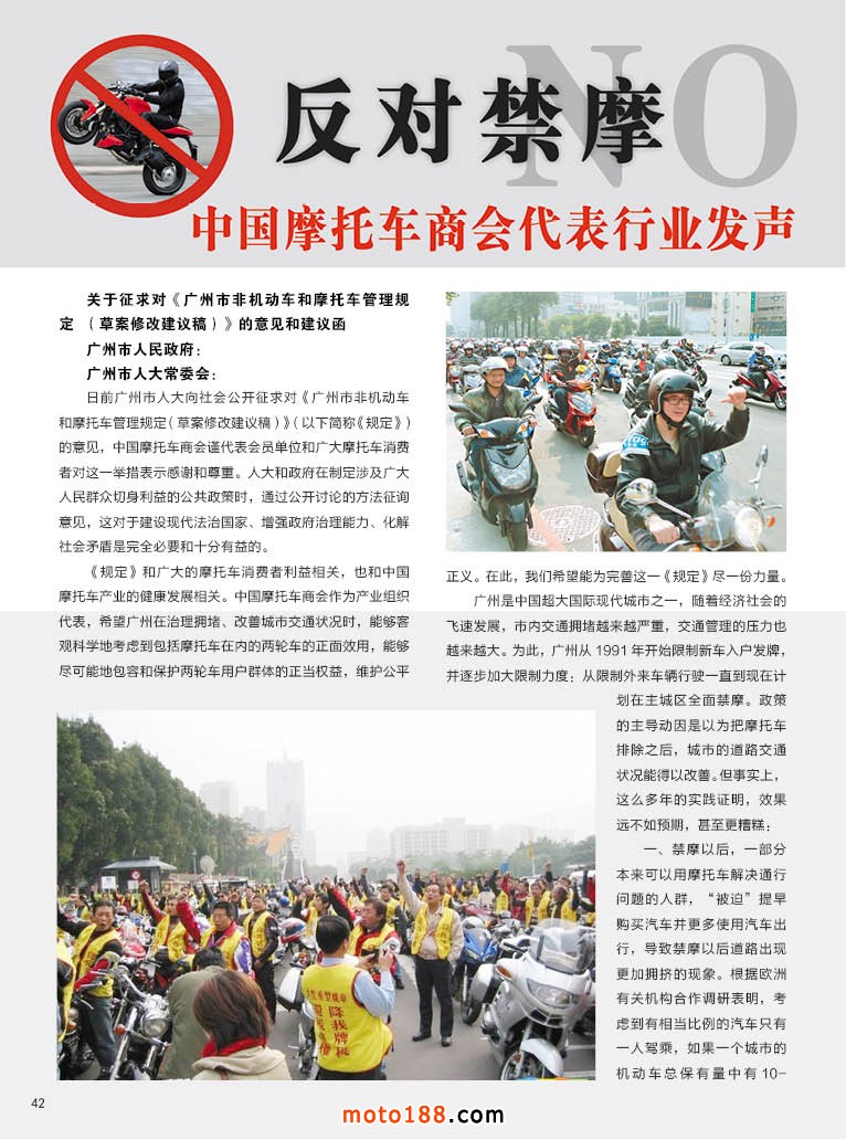 內(nèi)42 反對禁摩 中國摩托車商會代表行業(yè)發(fā)聲