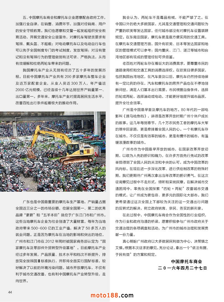 內(nèi)44 反對(duì)禁摩 中國摩托車商會(huì)代表行業(yè)發(fā)聲