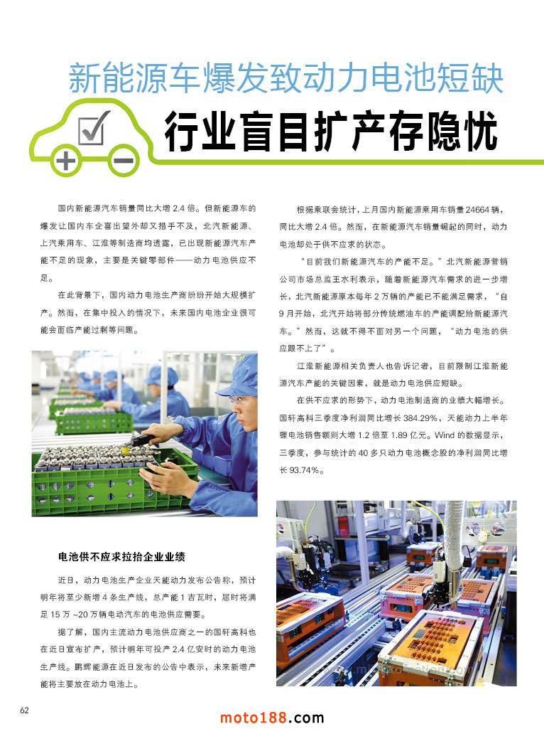 內(nèi)62 新能源車爆發(fā)致動力電池短缺 行業(yè)盲目擴(kuò)產(chǎn)存隱憂