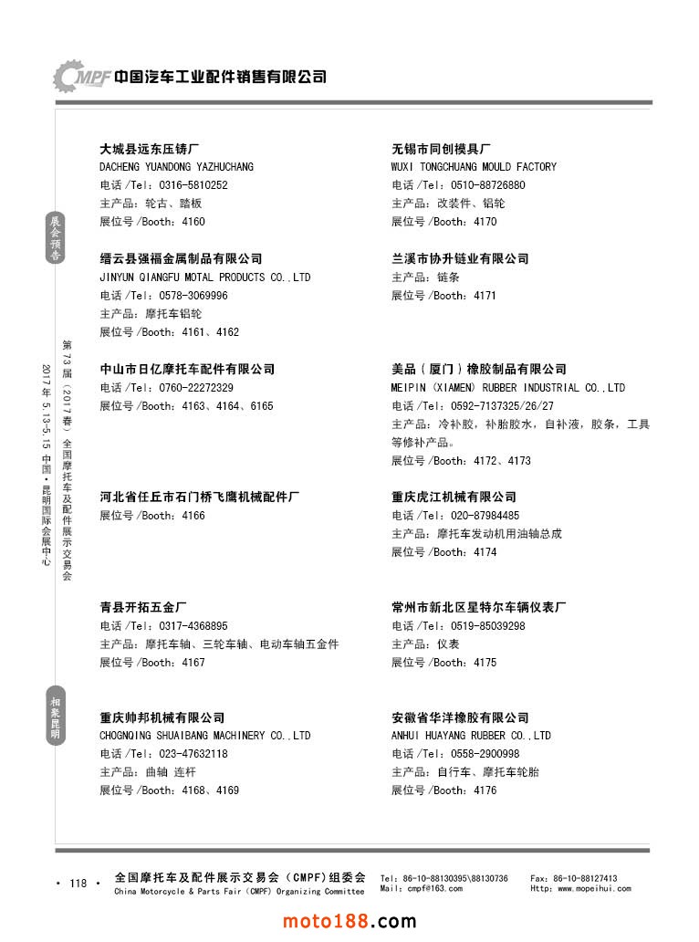 第36屆秋季(廣州)全國(guó)摩托車及配件展示交易會(huì)參展企業(yè)名錄