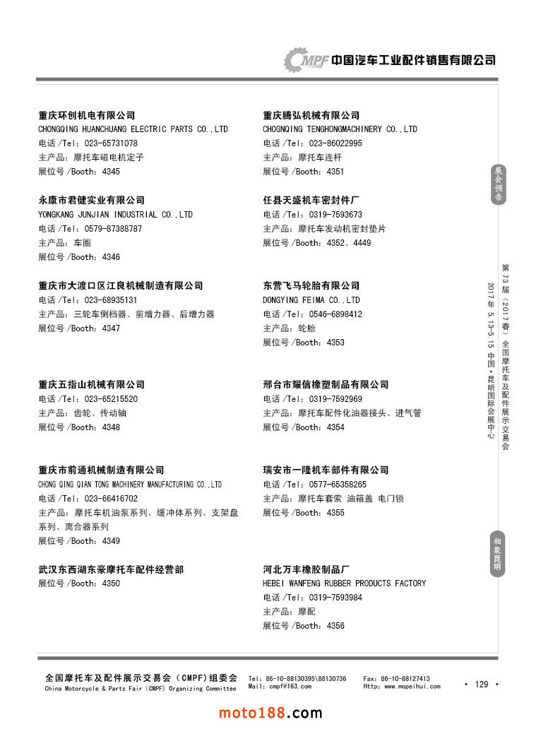第36屆秋季(廣州)全國摩托車及配件展示交易會參展企業(yè)名錄