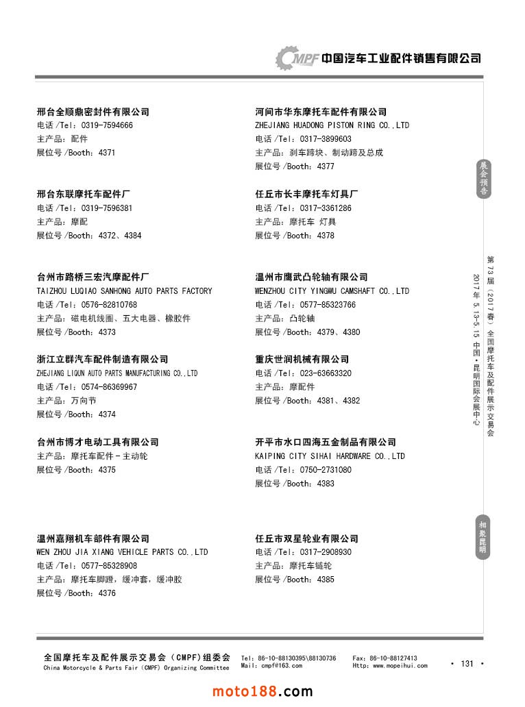 第36屆秋季(廣州)全國(guó)摩托車(chē)及配件展示交易會(huì)參展企業(yè)名錄