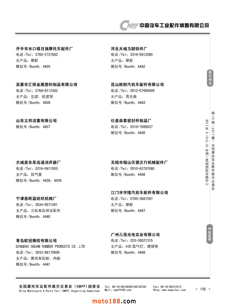 第36屆秋季(廣州)全國摩托車及配件展示交易會參展企業(yè)名錄