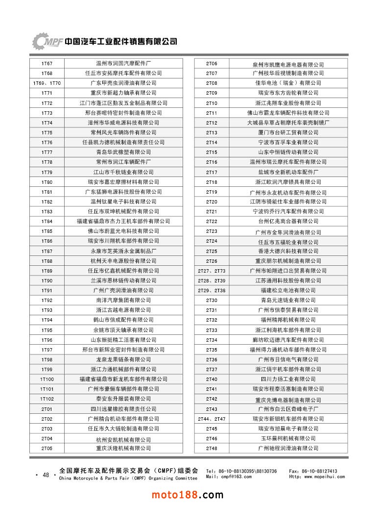 第36屆秋季(廣州)全國摩托車及配件展示交易會參展單位名錄