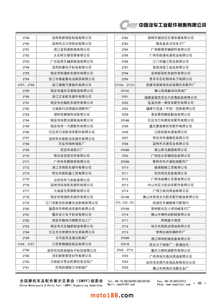 第36屆秋季(廣州)全國摩托車及配件展示交易會(huì)參展單位名錄