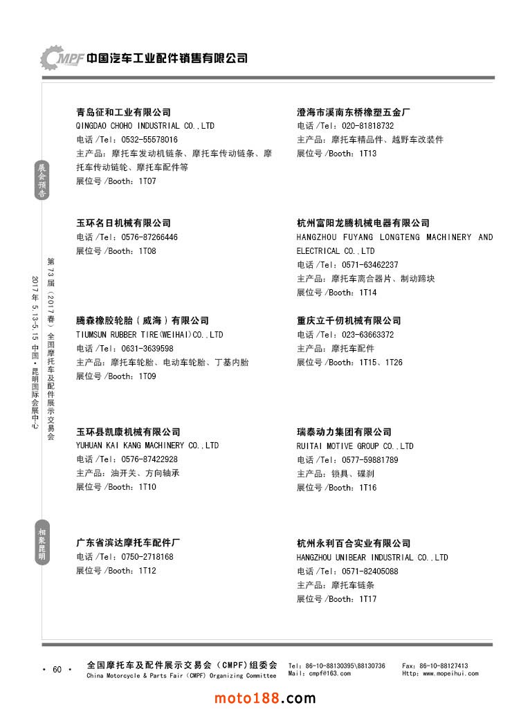 第36屆秋季(廣州)全國(guó)摩托車(chē)及配件展示交易會(huì)參展企業(yè)名錄