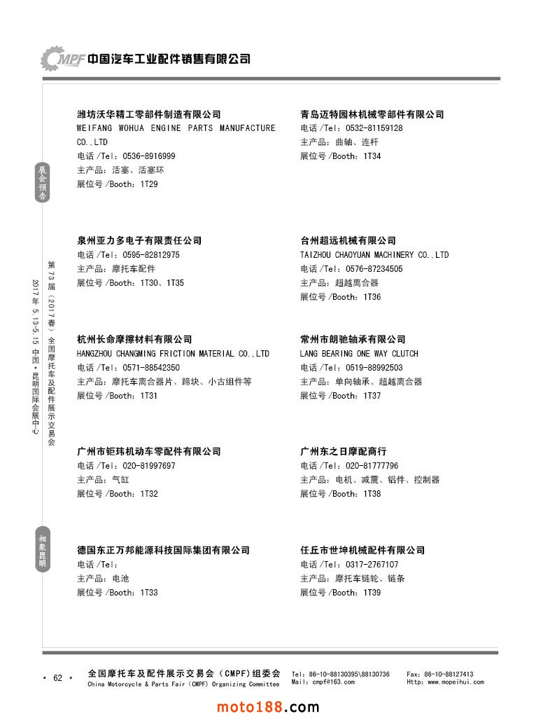 第36屆秋季(廣州)全國(guó)摩托車(chē)及配件展示交易會(huì)參展企業(yè)名錄