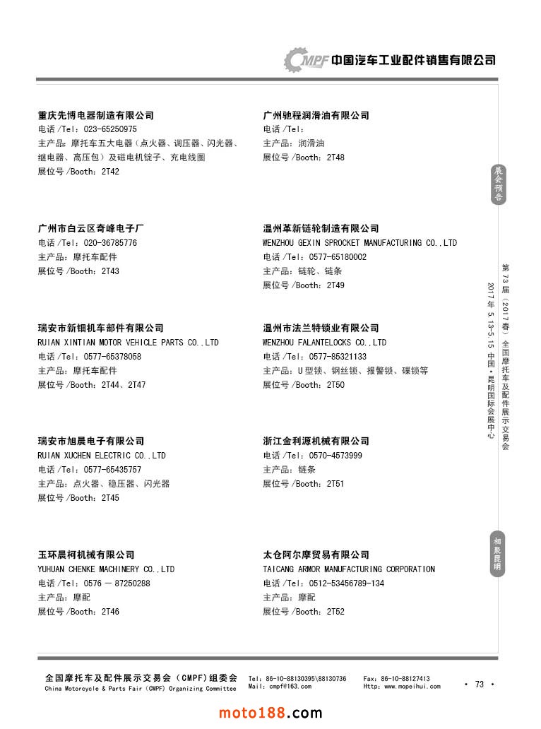 第36屆秋季(廣州)全國摩托車及配件展示交易會(huì)參展企業(yè)名錄