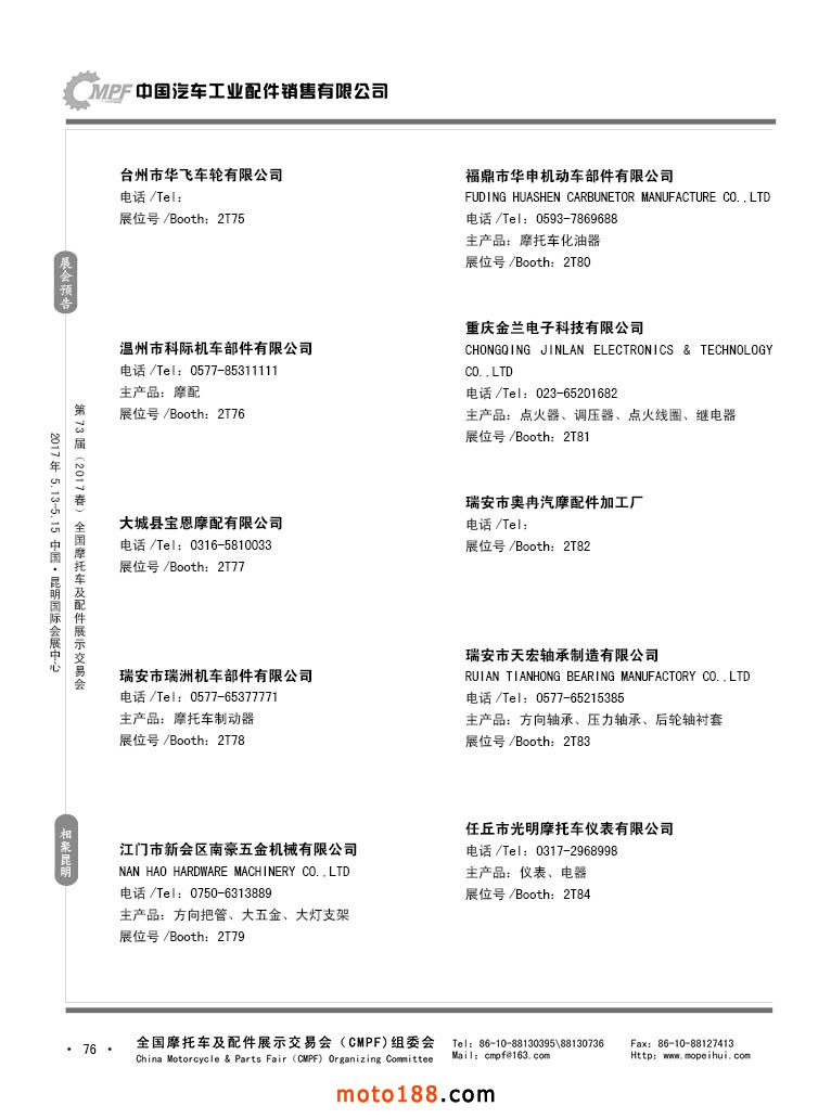 第36屆秋季(廣州)全國(guó)摩托車(chē)及配件展示交易會(huì)參展企業(yè)名錄