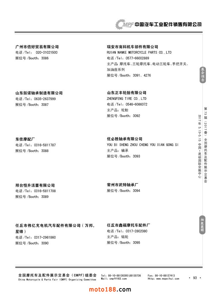 第36屆秋季(廣州)全國摩托車及配件展示交易會(huì)參展企業(yè)名錄