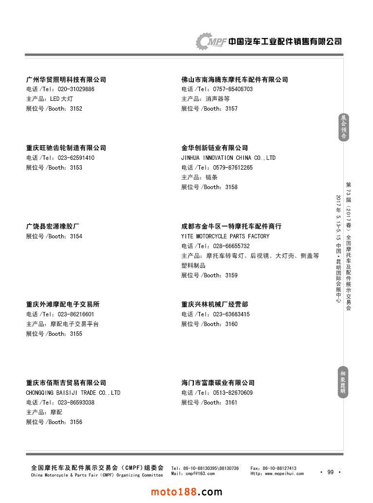 第36屆秋季(廣州)全國(guó)摩托車(chē)及配件展示交易會(huì)參展企業(yè)名錄
