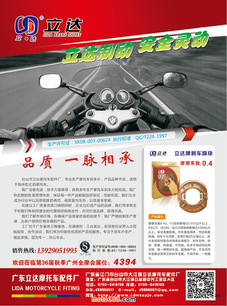 行業(yè)期盼已久的廣州全國摩托車暨配件展示交易會終于開幕了,我們經(jīng)過大半年的努力,為行業(yè)奉上了我們的勞動成果:《中國摩托車配件華南市場指南》第二次升級版, 本次升級版,在編排過程中,以廣州市場為核心,加上海南,新增廣西市場。廣州羅沖圍一帶市場現(xiàn)在已經(jīng)成為行業(yè)的半壁江山,目前這些企業(yè)以外貿為主,吞吐量巨大,我們用了中英文形式編排,所有英文,我們有專業(yè)人員翻譯,確保翻譯的質量,編排順序由市場從東往西再往南。