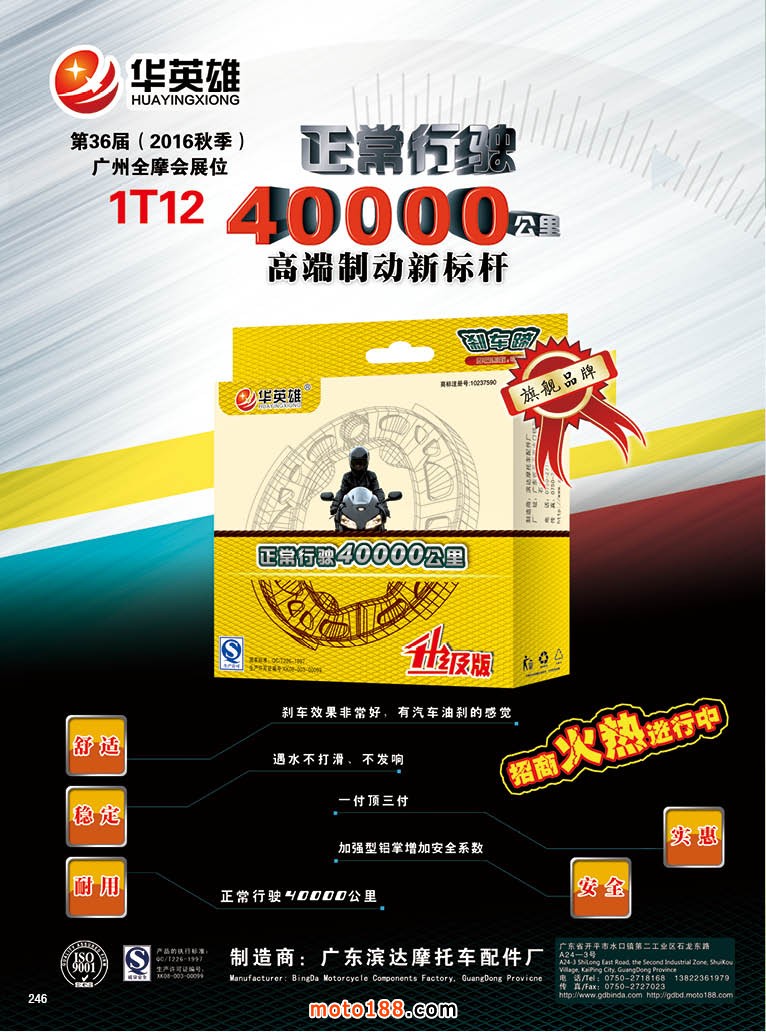 行業(yè)期盼已久的廣州全國摩托車暨配件展示交易會終于開幕了,我們經(jīng)過大半年的努力,為行業(yè)奉上了我們的勞動成果:《中國摩托車配件華南市場指南》第二次升級版, 本次升級版,在編排過程中,以廣州市場為核心,加上海南,新增廣西市場。廣州羅沖圍一帶市場現(xiàn)在已經(jīng)成為行業(yè)的半壁江山,目前這些企業(yè)以外貿(mào)為主,吞吐量巨大,我們用了中英文形式編排,所有英文,我們有專業(yè)人員翻譯,確保翻譯的質量,編排順序由市場從東往西再往南。