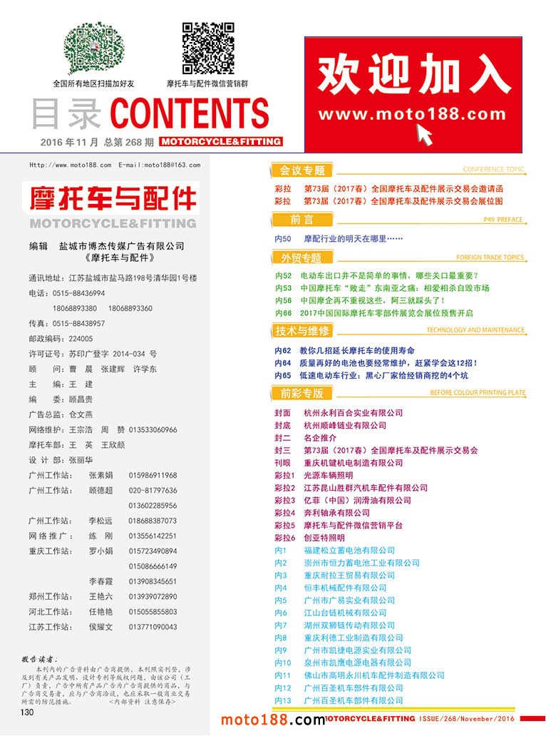 雜志將作為摩托車與配件微信營銷平臺的最重要的開路工具,全國各企業(yè)、市場人員可直接掃二維碼加入。展會期間歡迎各位光臨4092展位,掃二維碼領(lǐng)取雜志和《華南市場指南》。