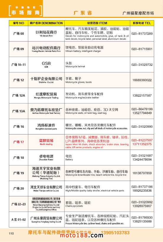 內(nèi)110廣州福星摩配市場(chǎng)商戶