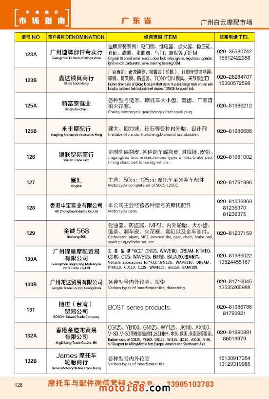 內(nèi)128 廣州市白云摩配市場(chǎng)商戶(hù)