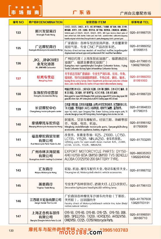 各摩配市場(chǎng)詳細(xì)資料請(qǐng)注冊(cè)我們的VIP會(huì)員咨詢 電話:0515-88436994 QQ:309362965、842467029、1051652573