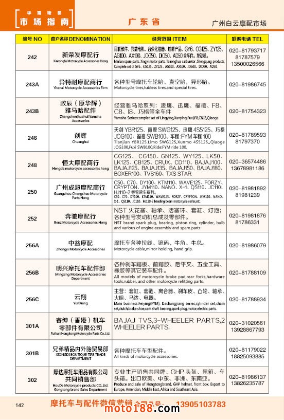 內(nèi)142 廣州市白云摩配市場(chǎng)商戶