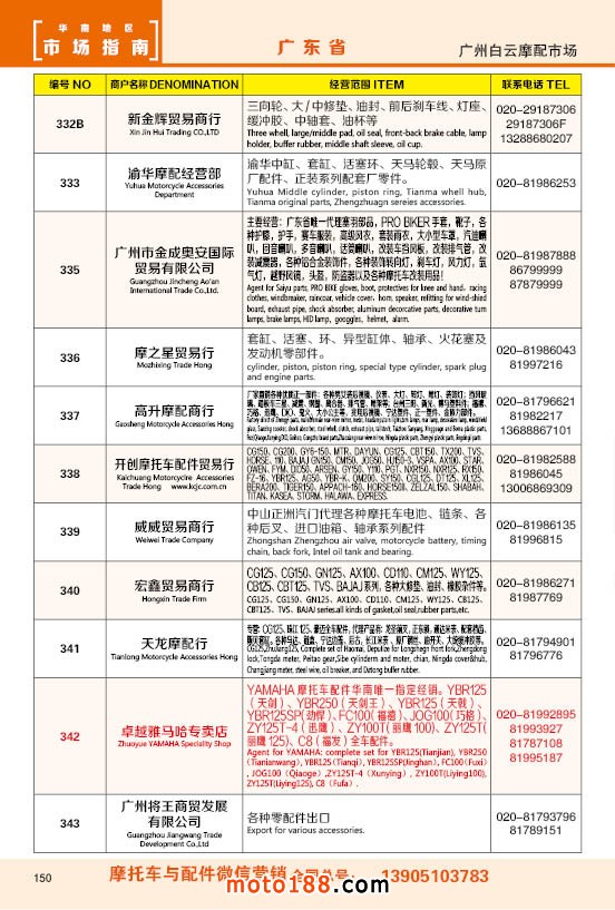內(nèi)150 廣州市白云摩配市場(chǎng)商戶
