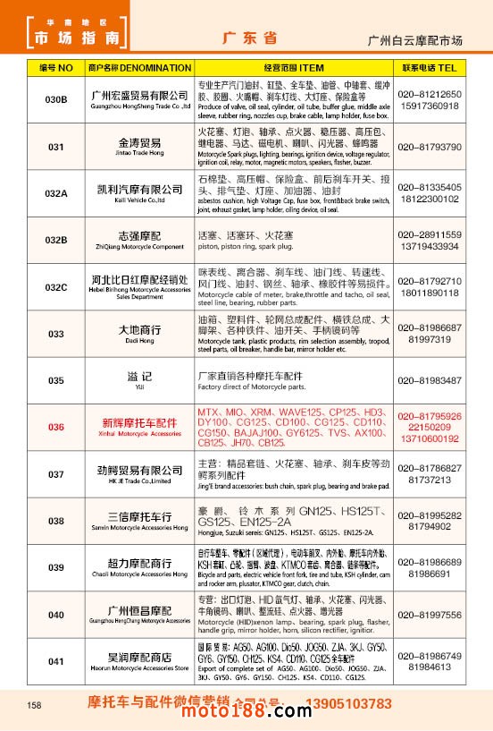 內(nèi)158 廣州市白云摩配市場(chǎng)商戶