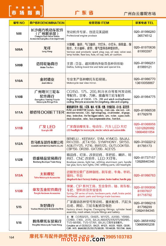 內(nèi)164 廣州市白云摩配市場(chǎng)商戶