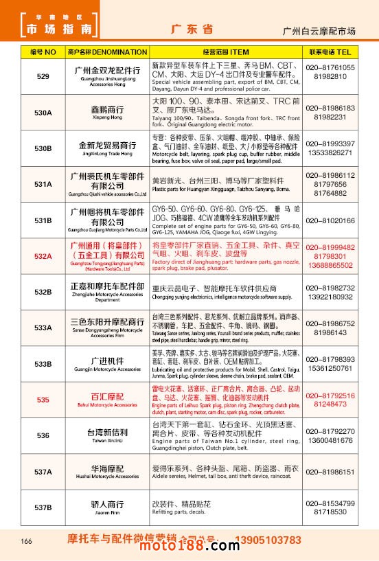 內(nèi)166 廣州市白云摩配市場(chǎng)商戶