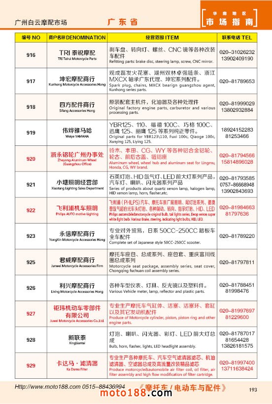 內(nèi)193 廣州市白云摩配市場(chǎng)商戶