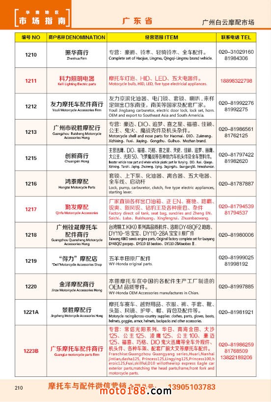 內(nèi)210 廣州市白云摩配市場(chǎng)商戶