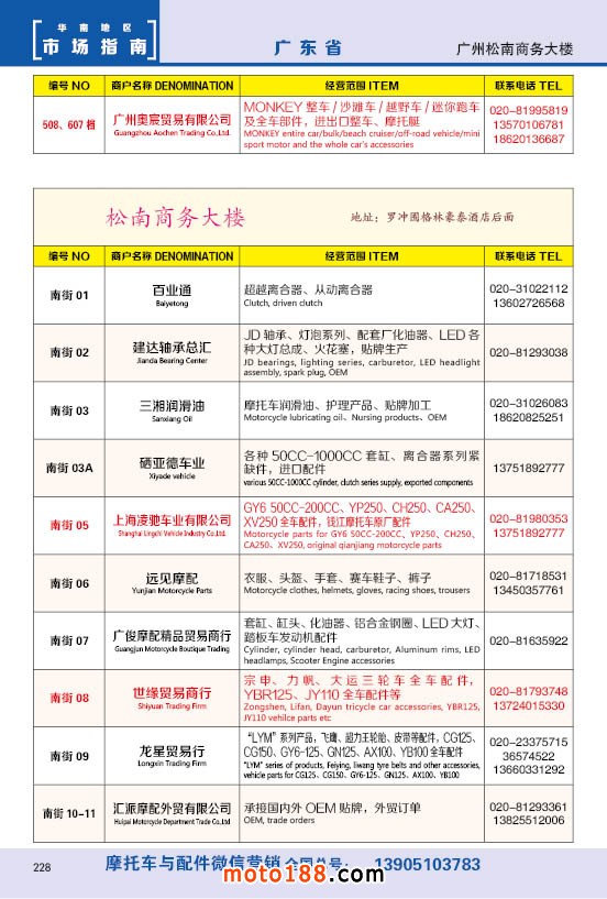 內(nèi)228 松南摩配市場(chǎng)商戶(hù) 內(nèi)228 松南商務(wù)大樓商戶(hù)