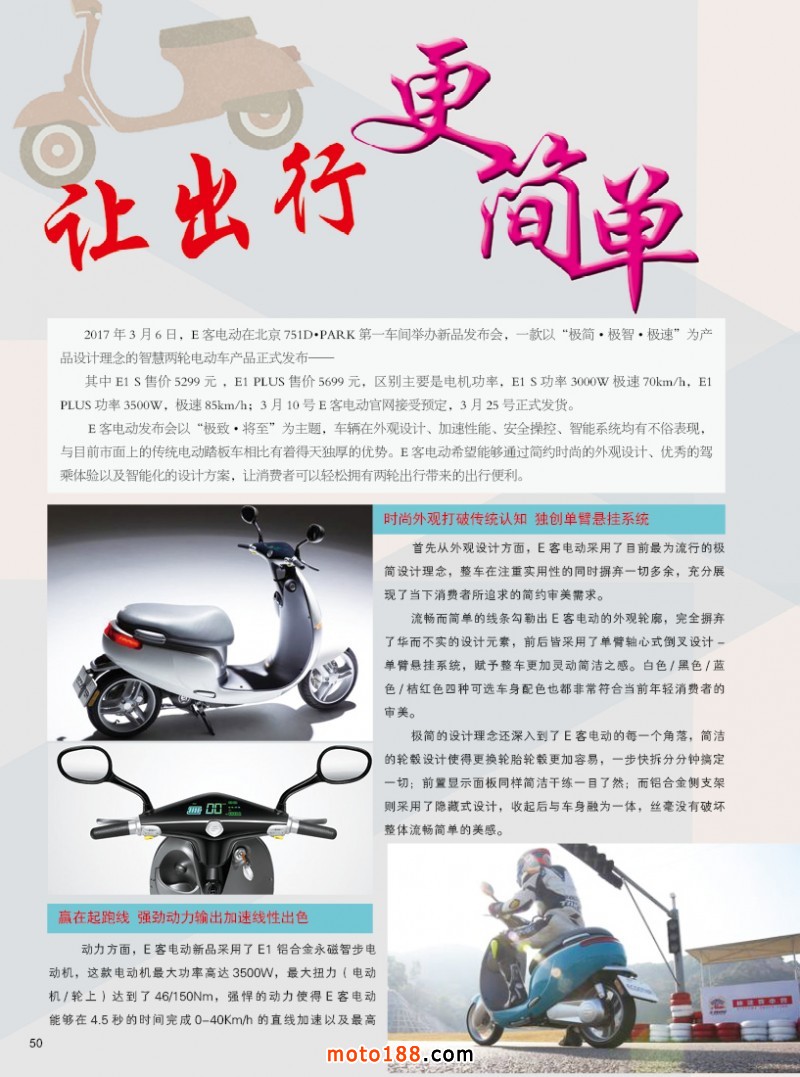 內(nèi)50 讓出行更簡(jiǎn)單 E客電動(dòng)摩托正式發(fā)布