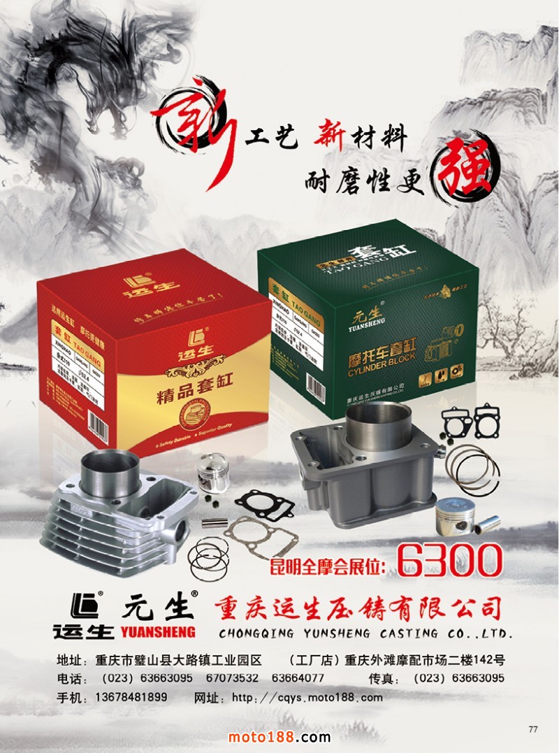 今年第73屆全國摩托車及配件展示交易會將在昆明召開,目前我們正在為會議進(jìn)行緊張的忙碌中。今年在會議上我們提供的資料是《西南地區(qū)市場指南》《會刊》《摩托車與配件》第五期雜志,歡迎大家到6130展位來領(lǐng)取。