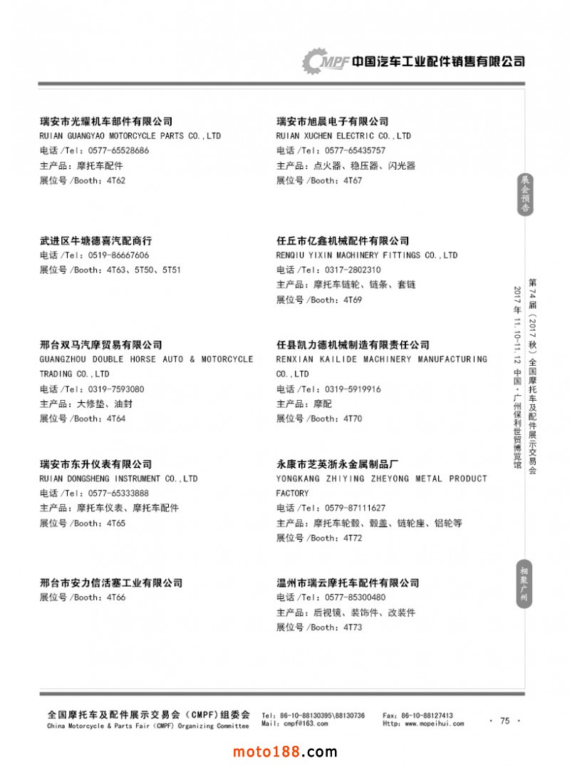內(nèi)75 參展企業(yè)名錄