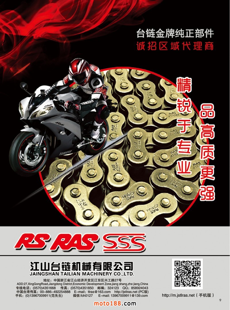 2017.6月《摩托車/電動(dòng)車與配件》雜志,歡迎大家閱讀日期:2017-06-02 點(diǎn)擊:1296 查看原圖 全部展開![]() ![]() ![]() 內(nèi)9 江山臺(tái)鏈機(jī)械有限公司