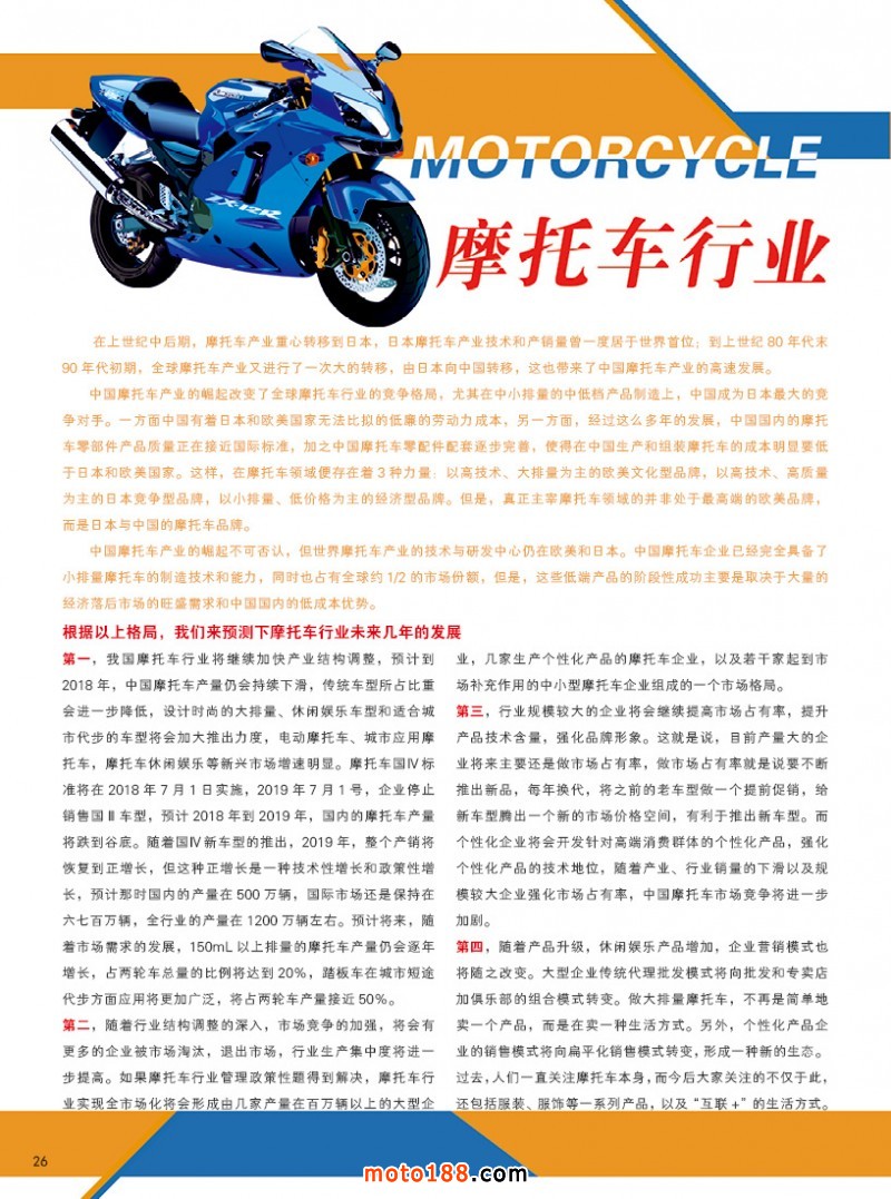 2017.6月《摩托車/電動(dòng)車與配件》雜志,歡迎大家閱讀日期:2017-06-02 點(diǎn)擊:1297 查看原圖 全部展開![]() ![]() ![]() 內(nèi)26 摩托車行業(yè)未來(lái)幾年的發(fā)展
