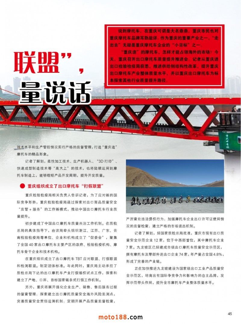 2017.6月《摩托車/電動車與配件》雜志,歡迎大家閱讀日期:2017-06-02 點擊:1297 查看原圖 全部展開![]() ![]() ![]() 內(nèi)45 重慶成立出口摩托車“打假聯(lián)盟”,一切靠質(zhì)量說話